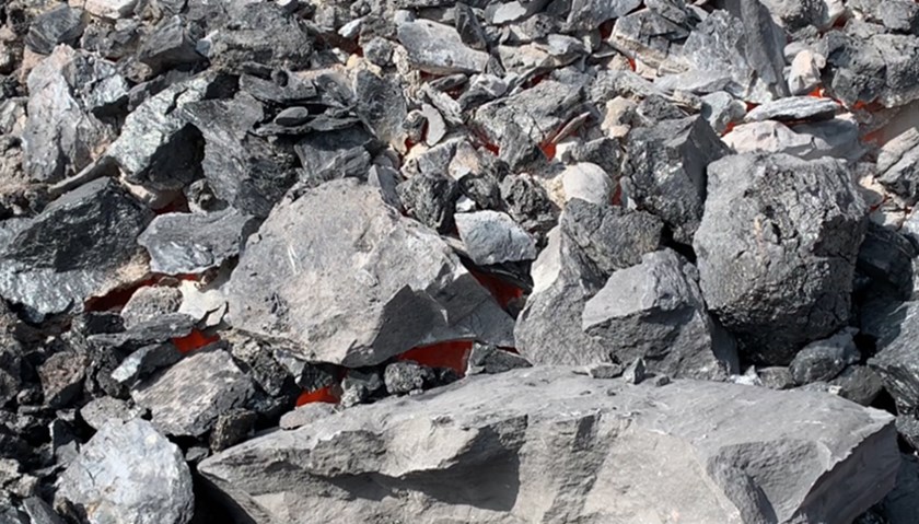太西煤的特点是在燃烧时往往看不到烟气,但在阳光的映照下,记者能明显地看到山体周边热浪忽闪。为了近距离查看煤炭自燃情况,记者又来到了大石头火区一明火点,刚一下车,就感觉脚下发烫。走到山脚下,热气愈加明显,从岩石缝隙向里看,山体内部像锅炉的炉膛一样呼呼燃烧。