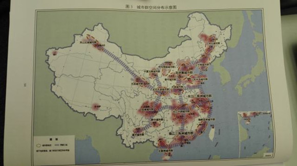 从图上看,既有京津冀、长三角、珠三角等世界级城市群,也有中原、成渝、兰西、天山北坡等中西部城市群,沿海还有山东半岛和海峡西岸城市群——气势恢宏,令人振奋。