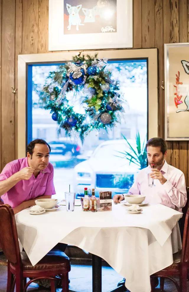在进行一番搜索之后,我们决定了下一家“行骗”的目标:蓝狗咖啡厅。这是一家和美国传奇艺术家George Rodrigue笔下角色同名的小餐馆,他们提供午间畅吃的开胃菜和汤,我们迫不及待地用魅影来“赢得”这顿霸王餐。