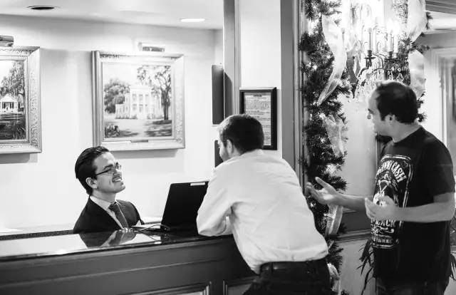 酒店充满了白色的圣诞灯饰,一种有钱人过节时的装饰艺术风格。我们走近了前台。“我们被抢劫了,”此时我的说法非常有说服力,因为外面各种警察活动得非常频繁。“我们所有的东西都丢了,除了我们的劳斯莱斯。一旦回到亚特兰大拿到新的信用卡时,我们可以马上付钱给你。”