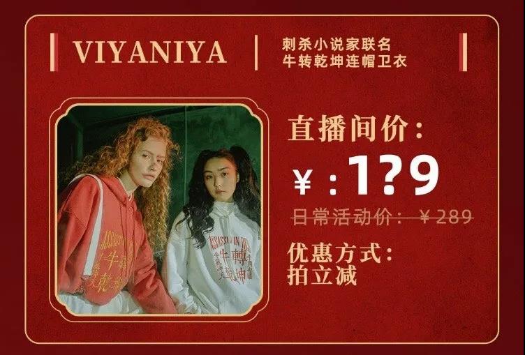冲击播项目负责人郭晓雅向东西文娱透露,在直播这种秀场中,在推销电影票的同时进行货品推销也会新增长点。可以看到,在《刺杀小说家》直播当晚,连同观影代金券售卖的还有薇娅同名品牌VIYA NIYA与《刺杀小说家》合作的联名卫衣、T恤。“目前还是一个比较新的尝试,我们也希望未来‘以票带货’未来更加的完善,在更前期的项目例如《外太空莫扎特》,在货品上的动作就相对启动的更早了。”