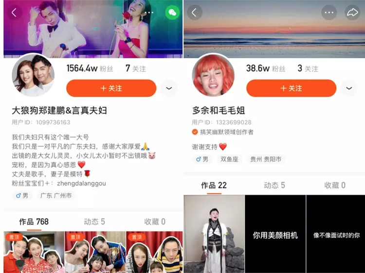 视频段子不是遥望的强项。旗下拥有毛毛姐、大狼狗郑建鹏&言真夫妇等达人的无忧传媒也入驻了快手。相比这类擅长视频内容变现的机构,遥望选择直播带货,主播不演戏、不唱歌,上来就卖货。这在快手直播生态里,也算是一朵“奇葩”了。