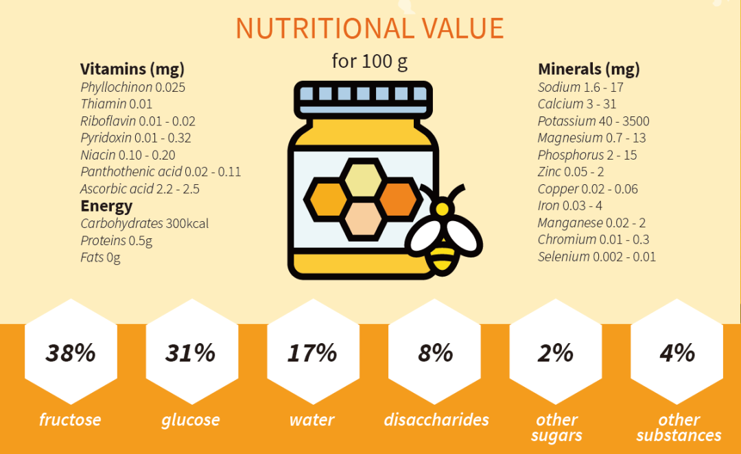 蜂蜜的营养价值,资料来源:FAO