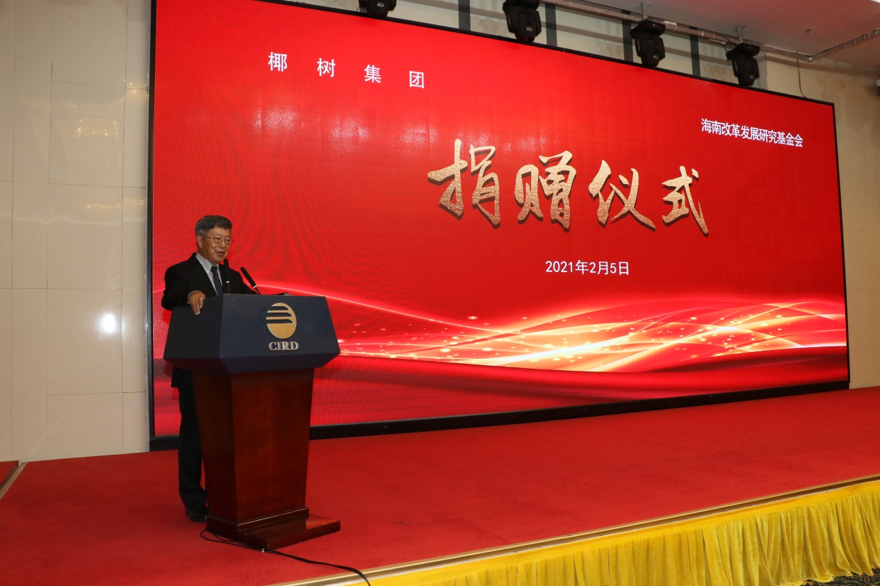 2月5日上午,椰树集团-海南改革发展研究基金会捐赠仪式在中改院学术交流中心举行。捐赠仪式上,椰树集团向海南改革发展研究基金会捐赠人民币一千万元,用以支持改革发展研究公益事业。海南省人大常委会原副主任吴昌元、中国(海南)改革发展研究院院长迟福林、椰树集团总裁王光兴、海南省民政厅副厅长石清理等出席捐赠仪式。