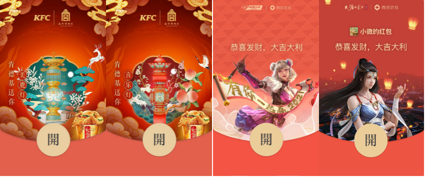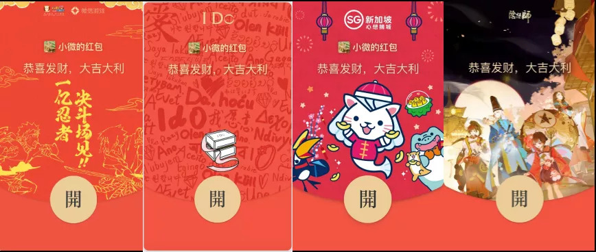 这类品牌虽然在视觉上不够出彩,但更适合春节场景,在弱化品牌风格的时候,同时,也大大增加了红包使用程度,因为太强品牌属性的红包,难免会有广告嫌疑,反而降低了使用频次,只成为了品牌营销战役的一个噱头,但红包封面营销的真正价值就在于互动交流,社交货币。