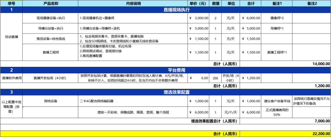 陈益康则透露,因为是以专业的视频拍摄团队承接年会直播项目,他们的收费更高,按照不同的节目呈现效果,一次收费在22000元左右。