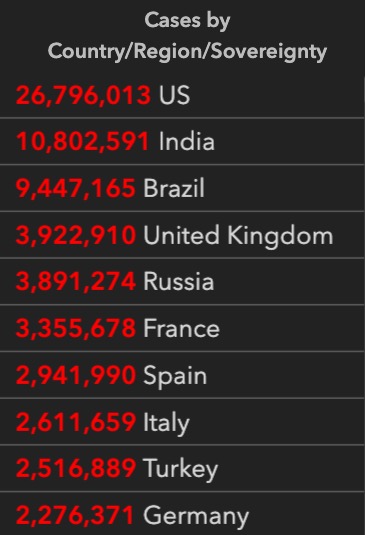0800【美国确诊病例超过2677万,4日单日死亡病例创新高】