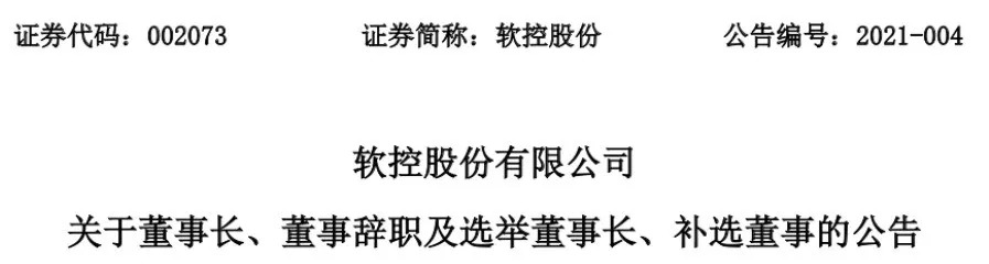 2021年1月29日,软控股份宣布变更董事长。原董事长HENING(何宁)因个人身体原因递交了书面辞职报告,申请辞去公司第七届董事会董事长、董事职务,同时辞去公司第七届董事会战略委员会委员、提名委员会委员职务。