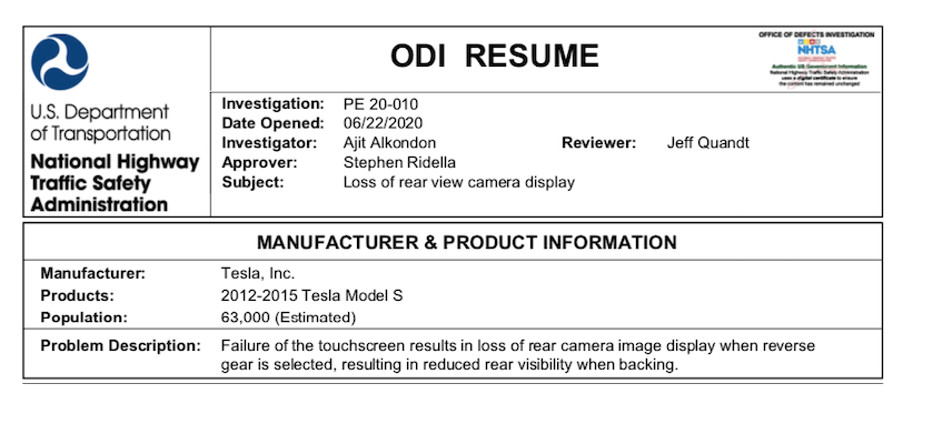 今年的1月13日,NHTSA给特斯拉发送了一份信函,要求其召回15.8万辆特斯拉Model S/X车型,理由是特斯拉的eMMC存储卡存在失灵情况,可能会影响车辆除雾功能、倒车影像功能和Autopilot自动驾驶辅助系统的权限,出现黑屏状态,导致汽车后视摄像头画面缺失、自动辅助驾驶系统丧失鸣响和提醒功能,以上缺陷会加大车辆撞车风险。NHTSA一改此前温和的态度,措辞严厉的要求,除非有特别足够的理由,特斯拉不得拒绝NHTSA提出的召回措施德国机动车管理局(KBA)也在1月24日宣布加入调查特斯拉车辆的相关安全问题。