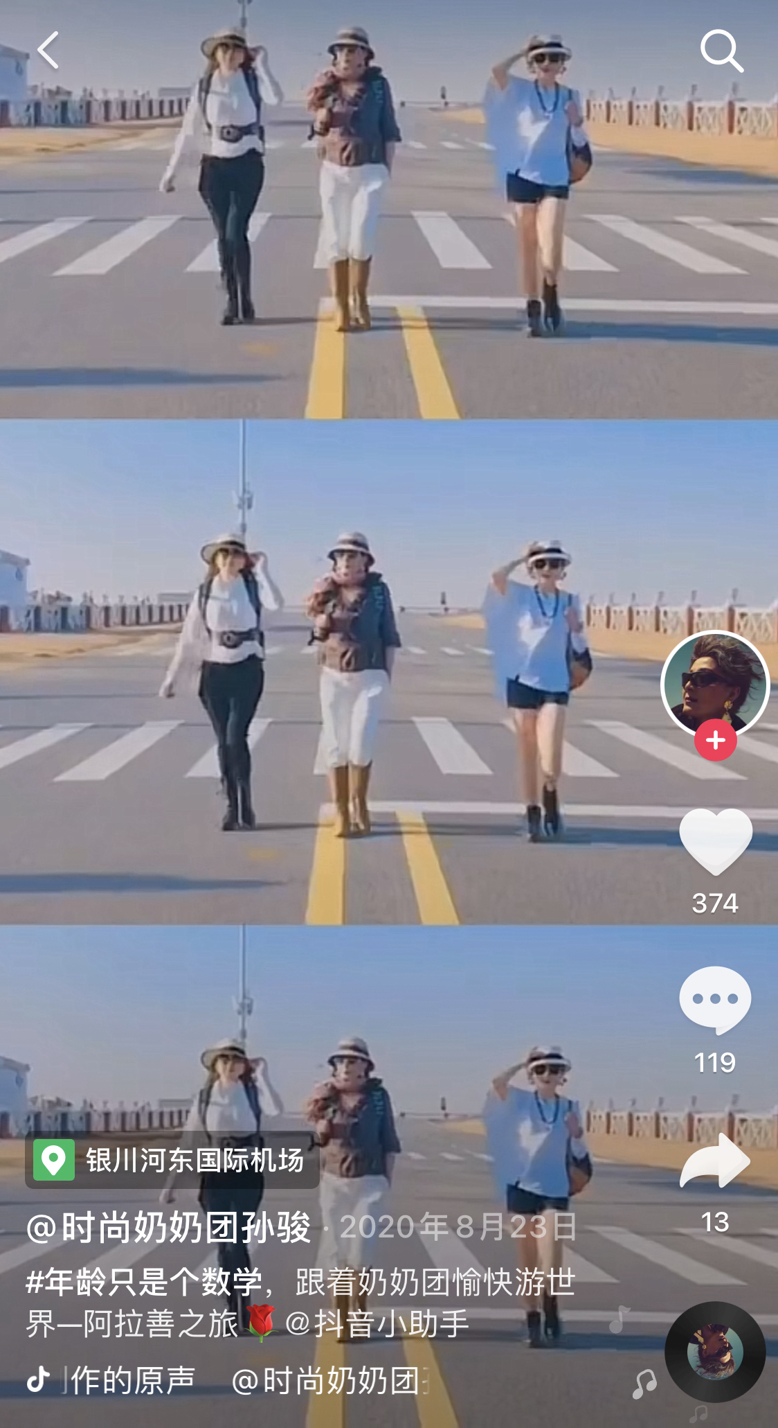 时尚奶奶团的运作方是北京令闻天下文化传媒有限公司。在发布“旗袍奶奶埃菲尔铁塔走秀”、“奶奶开直升飞机”等爆款内容后,时尚奶奶团在抖音积累了超过300万粉丝。而不少团员奶奶个人,包括孙骏,也顺势成了老年博主界的“大V”。