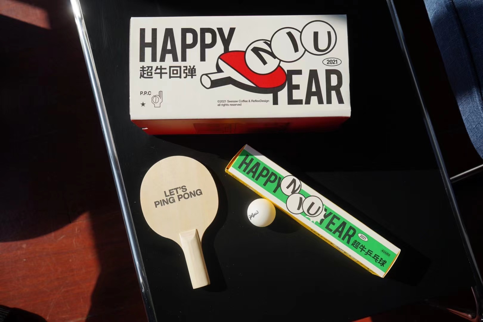 还有不少品牌的新年礼盒凭借创意和设计受到了年轻人的青睐:精品咖啡连锁Seesaw联合设计工作室ReflexDesign推出了一款“超牛回弹乒乓”礼盒,里面有挂耳咖啡包、乒乓球拍和6只乒乓球,这些乒乓球被做成了彩蛋——有的是真球,有的则是做成彩蛋的与真球外观无异的球。一周内,这款新年礼盒迅速在线上售罄,目前仅剩500套在线下门店贩卖。