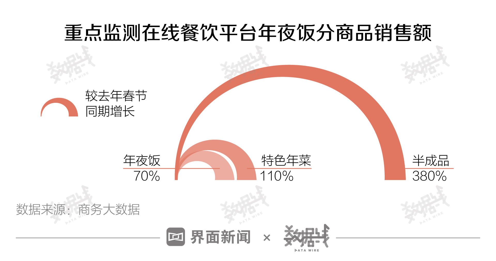 商务大数据显示,在重点监测在线餐饮平台年夜饭系列商品中,“半成品”同比增长达到380%。