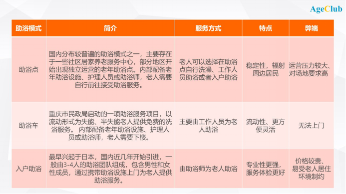 服务模式上,老年助浴点、助浴车、入户助浴,也越来越多元化。