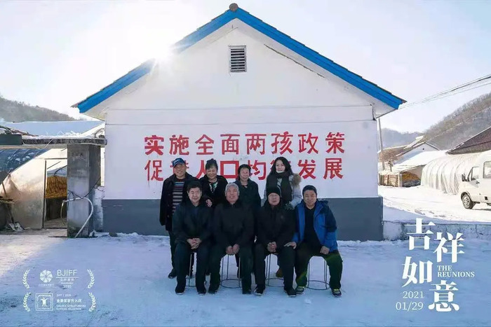 《吉祥如意》是在筹备《缝纫机乐队》的时候拍的。《缝纫机乐队》在吉林省集安市拍摄,离姥姥的家乡很近,电影里的“大吉他”要建5个月,当时临近春节,大鹏想要回去拍一场家里人的年夜饭,顺便还能陪姥姥过个年。