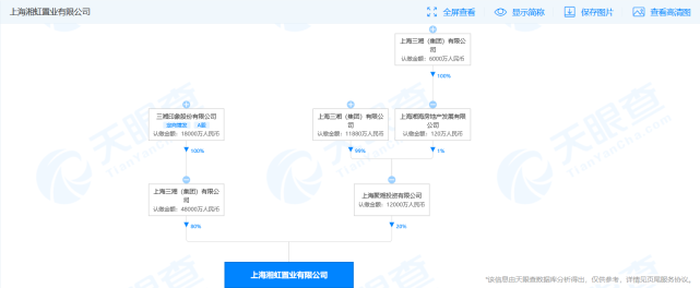 据天眼查资料显示,此次出售的湘虹置业由上海三湘(集团)有限公司持股80%,上海聚湘投资有限公司持股20%。前者间接持有后者100%的股份,同时为上市公司三湘印象旗下全资子公司。