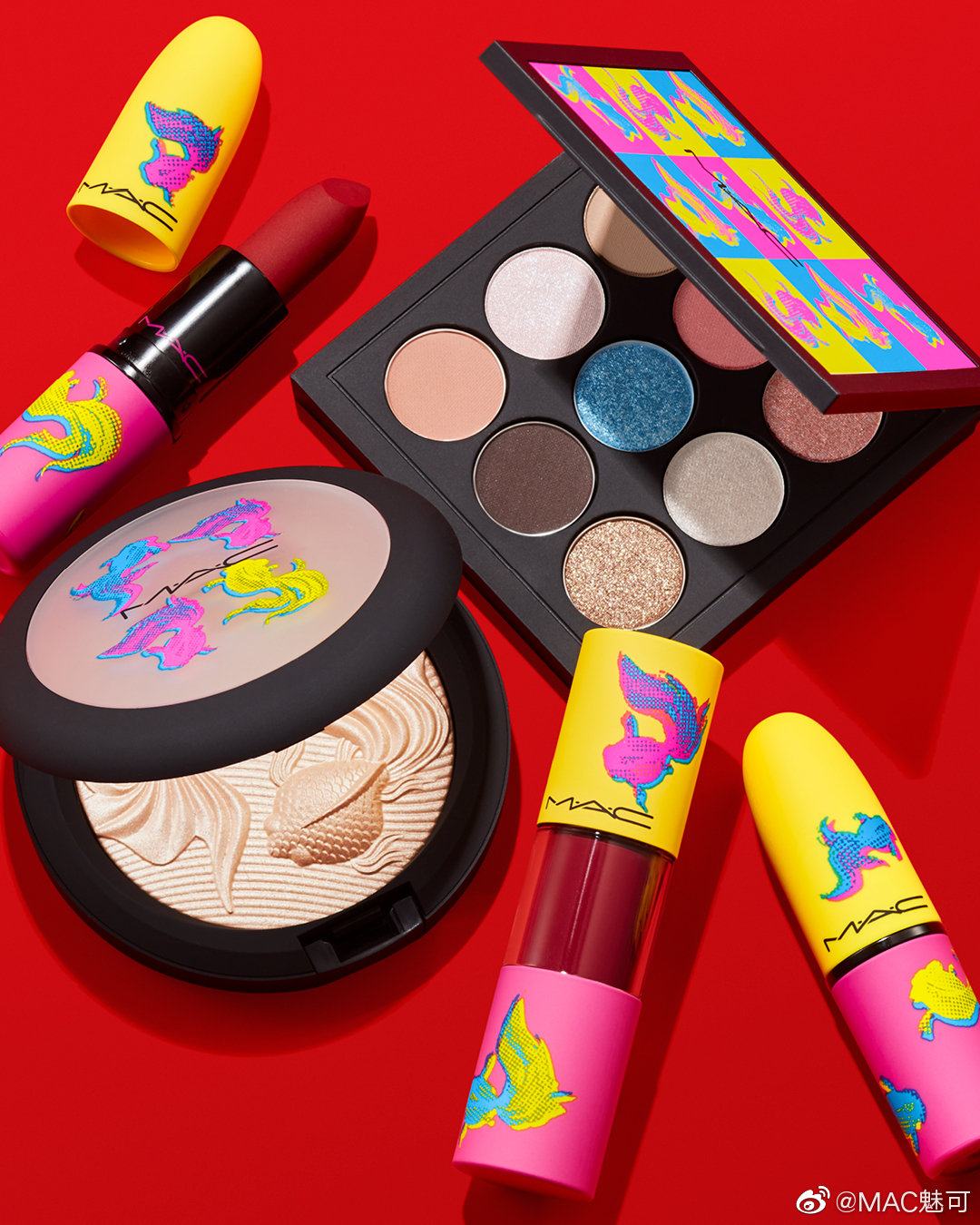 MAC魅可今年的新春彩妆系列是波普撞色的锦鲤妆。九色锦鲤眼影盘、金色锦鲤生姜高光、波普转运腮红以及新年开运尤雾弹系列,为你打造好运锦鲤妆容。