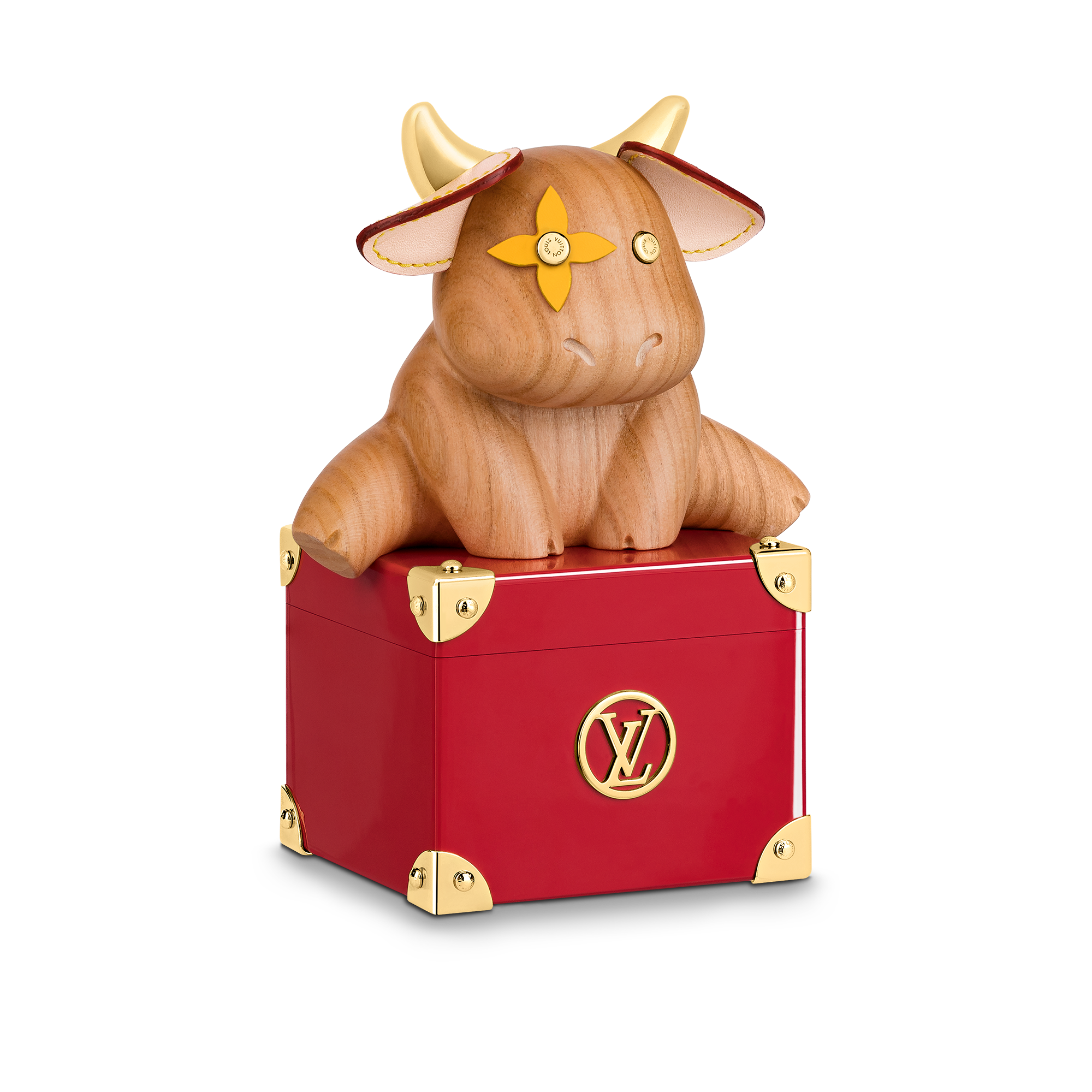 Louis Vuitton路易威登今年的丰富配饰系列可列入新年送礼清单了。这次,路易威登设计了一只 “劈叉牛”形象。憨态可掬的小牛印上LV Rodeo 方巾以及山羊绒围巾,还化身为立体的Cow Box 收纳盒和镶嵌水晶Rodeo项链。Tambour Horizon智能腕表也更新了点缀Monogram花卉图案的生肖牛动画。