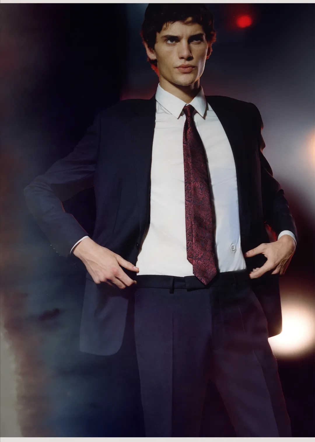 新的一年要从“领带”开始。Dior迪奥今年携手加州设计师Shawn Stussy带来了新年男士系列,以海军蓝和红色为主色调打造了诸如飞行夹克、卫衣等系列休闲单品,其中也不乏领带等正装配饰,新年“见家长”的必备单品。红色提花图案配合新年氛围,海军蓝底色则展现沉稳。