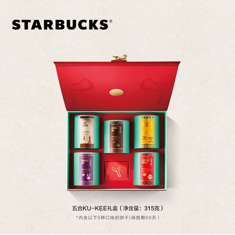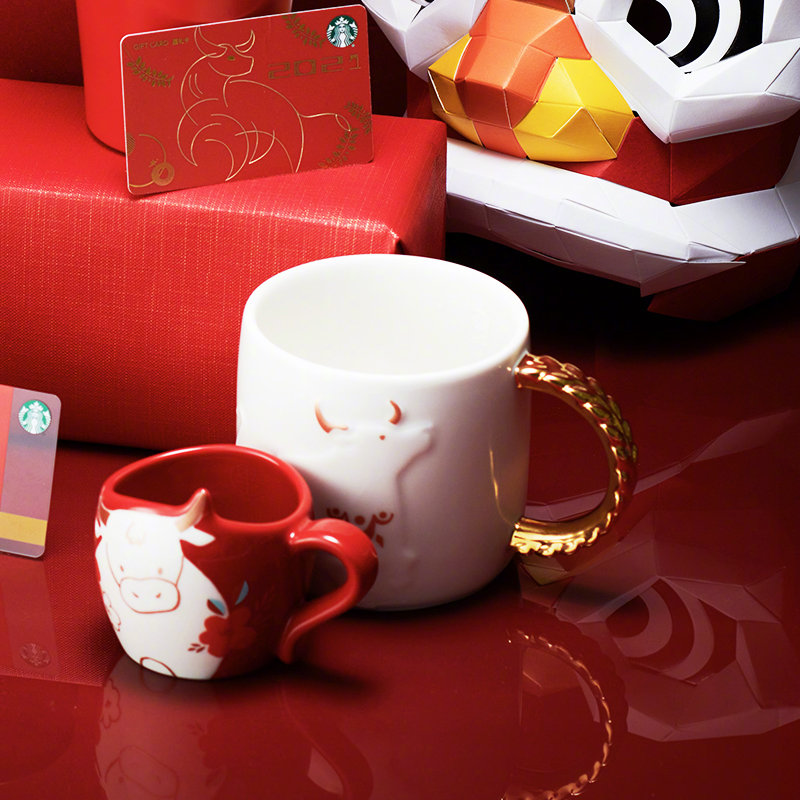 新的一年,星巴克又带着牛年特别版星杯上新了。咖啡杯、马克杯及吸管杯等都换成了新年红,杯身上除了生肖牛外,还有舞狮和小熊图案。此外,星巴克还在今年上新了三合kù-kee新年糕点礼盒,春节在家刷剧必备小零食。