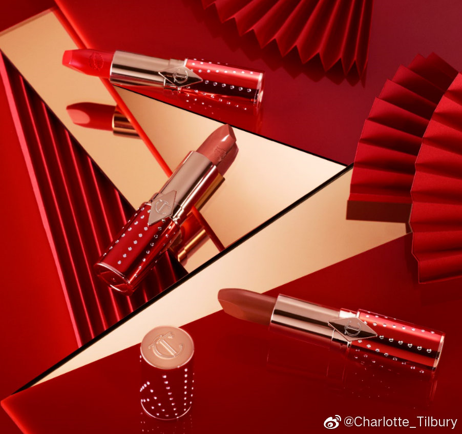 新年见长辈或日常居家,可能不需要过于明艳的妆容,但一支用来提气色的温柔蜜桃调唇膏也必不可少。Charlotte Tilbury的新年钻光限定版三色唇膏会是不错的选择。两款玫瑰红和樱桃红雾感唇膏,厚涂依然浓郁明艳,哑光质地的蜜桃奶茶色则温柔清甜。