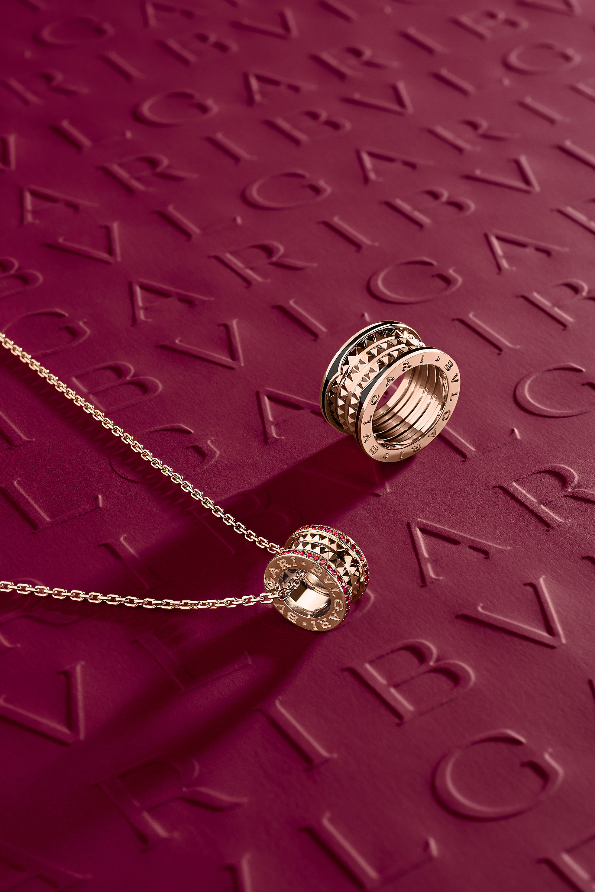 闪耀着美好祝福的红宝石,和寓意万事顺利的螺旋吊坠,组成了BVLGARI宝格丽今年的新春特别款项链B.zero 1 ROCK。该款项链吊坠由18K玫瑰金打造,螺旋部分点缀饰钉,边缘则镶嵌闪亮红宝石。