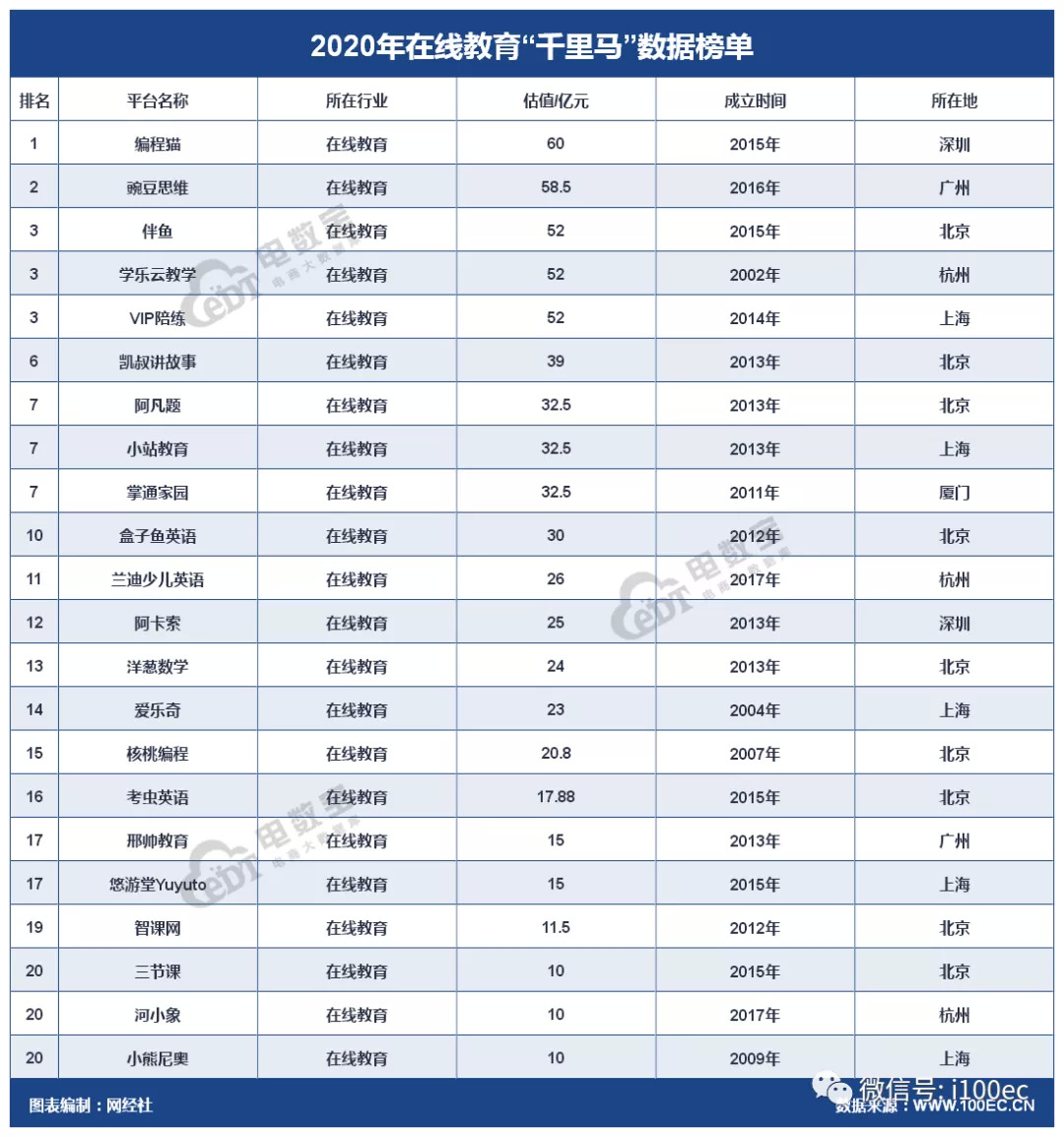 以下为网经社“电数宝”电商大数据库为您带来的《2020年在线教育“千里马”榜》: