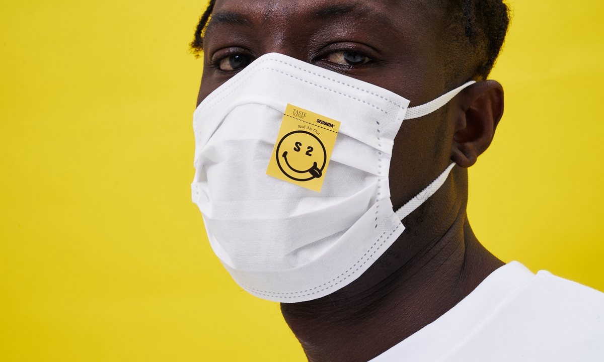 潮流品牌 Segunda®️近日便与国内香薰品牌Taste Square合作,推出了“Bad Air Out”香气贴纸系列。将香气贴纸贴在口罩一侧,能够散发不同味道的清新香气,驱除长期佩戴口罩产生的异味。