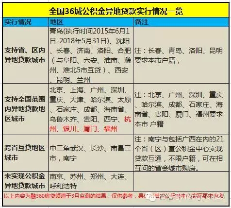 在融360监测的36个主要城市中,截至3月9日,实现公积金异地贷款城市可以概括以下几种: