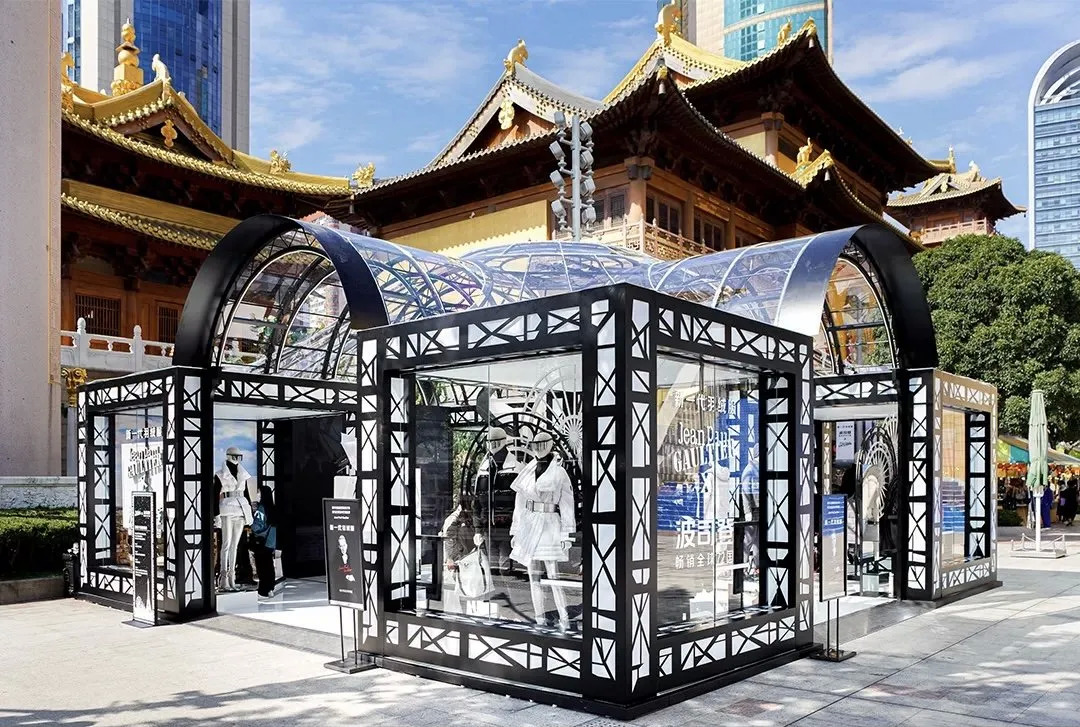 2020年11月6~17日,波司登在上海久光百货推出高缇耶联名系列限时快闪店,以巴黎大皇宫为灵感,还原了法式情调的风格场景,还在内部陈设的设计师工作区,消费者可近距离体验设计师的工作状态,购买产品还可获得插画师现场定制的个人专属插画。
