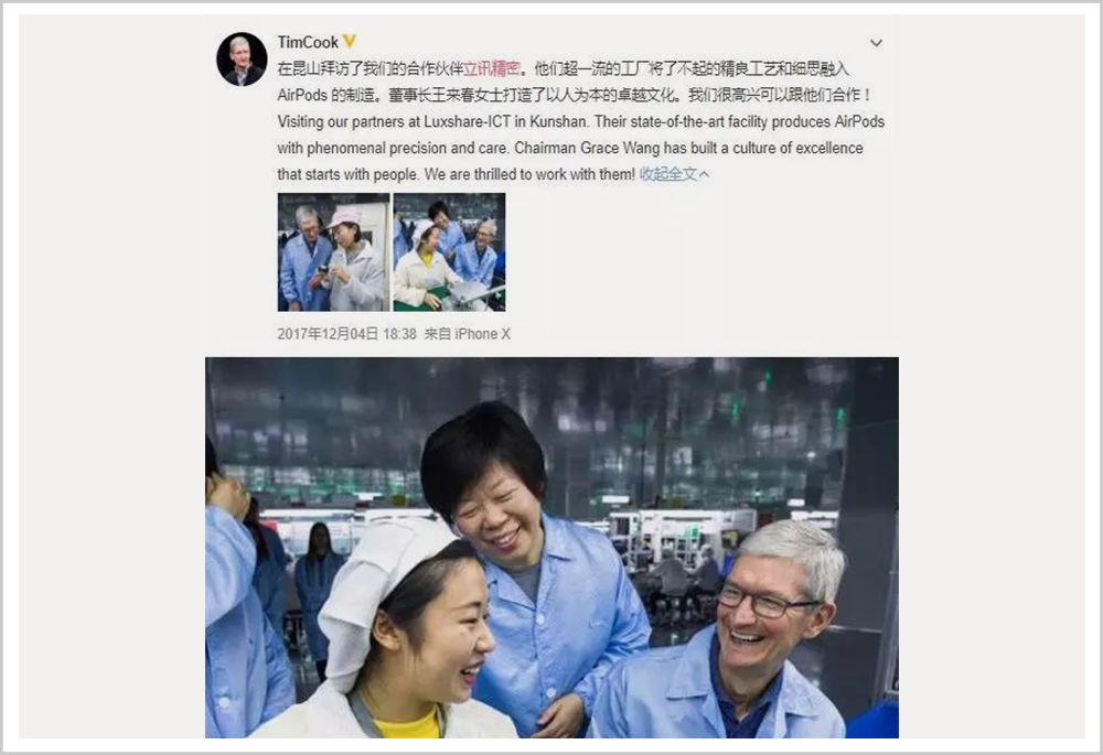 管理方面,王来春效仿富士康的管理流程和企业文化,郭台铭的经典语录在办公楼和车间的各个角落随处可见。业务方面,富士康贡献了其50%的营收,每年为立讯精密带来逾10亿元的订单。