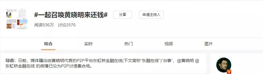 在艰难的维权之路上,部分受害者将矛头转向那些代言P2P平台的明星——他们是公众人物,不会跑路,也没法隐身。