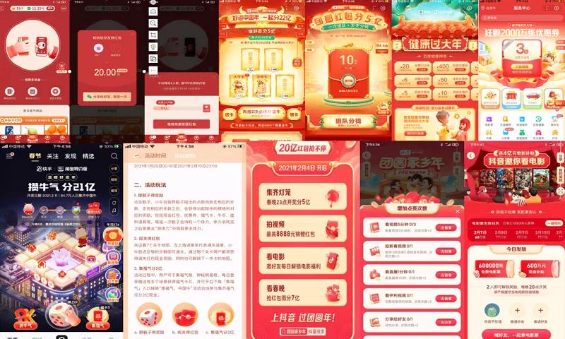 据媒体报道,2020年春节期间,互联网企业累计发红包超过40亿元,购物补贴20亿元。而据雷达财经不完全统计,2021年春节期间,至少有10个App参与发现金活动,总金额预计在135亿元以上。
