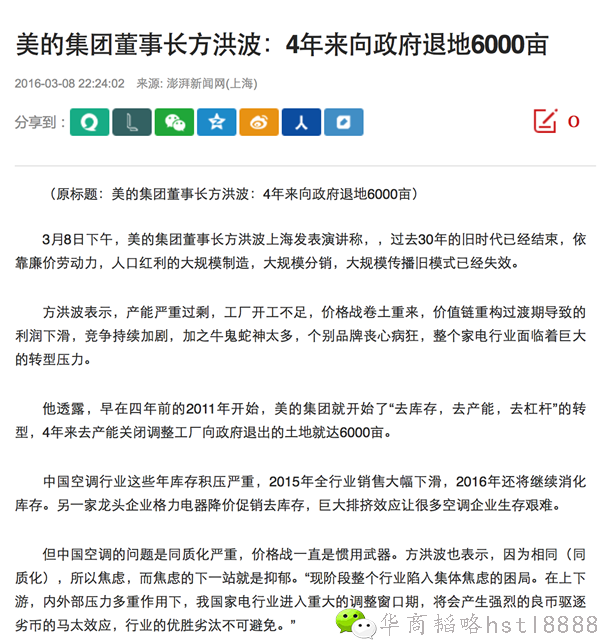 之后是“美的”董事长方洪波在上海美的经销商大会上,不但直接回应格力的指责,而且暗指格力恶意炒作破坏产业环境。