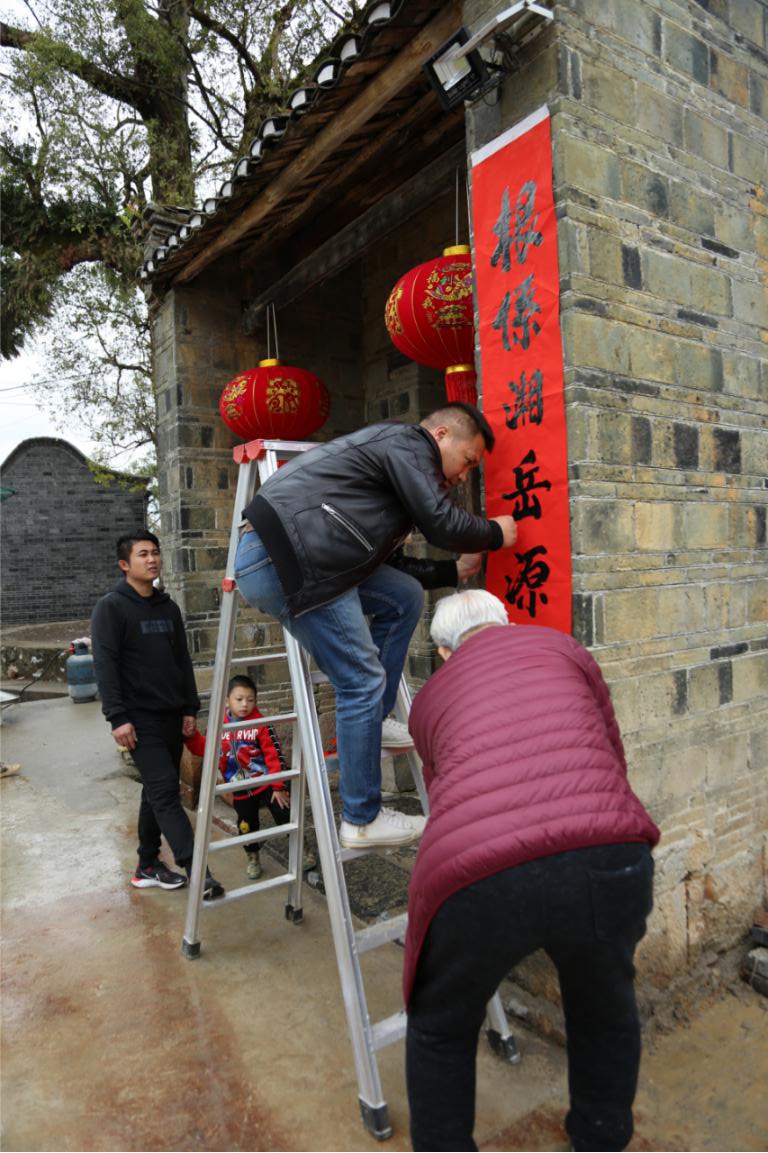 村民们正在贴春联。