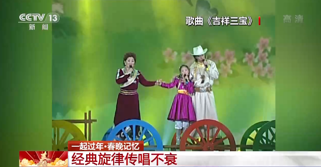 2006年的春晚,让一首表现美满家庭生活的《吉祥三宝》家喻户晓。歌曲用蒙古语演唱,虽然不是所有观众都能听懂歌词的含义,但《吉祥三宝》凭借着清新的草原风格和稚嫩可爱的童声拥有了超越语言、文化和年龄的魅力。
