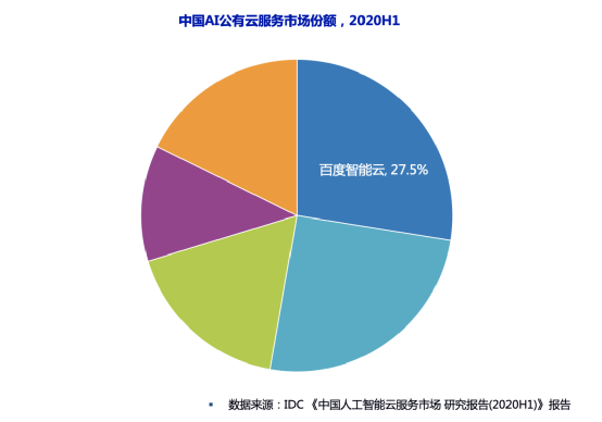亚马逊、微软借云创造巨大的商业价值,这对于国内云厂商来说同样具有可观的发展空间。去年,全球知名咨询机构IDC发布《中国人工智能云服务市场研究报告(2020H1)》报告,在中国AI公有云服务市场,百度智能云市场份额排名中国第一。
