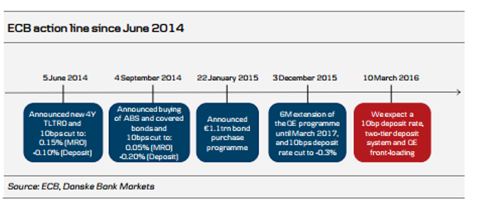 欧洲央行行长德拉吉(Mario Draghi)在1月会议上暗示,将在3月份出台更多刺激措施。2月份,德拉吉在欧洲议会上称,欧洲央行“会毫不犹豫地采取措施。”这些表态令许多市场人士认为宽松措施加码“木已成舟”。