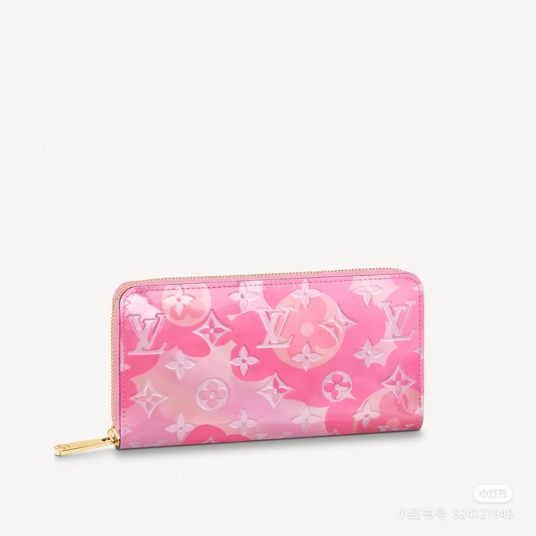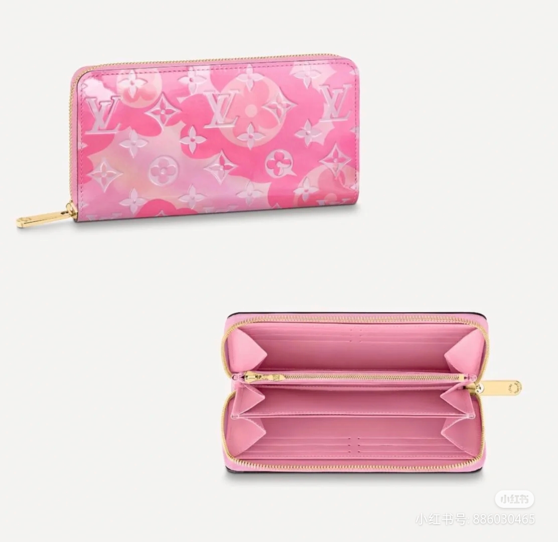 Louis Vuitton路易威登虽然没有推樱花限定,但这款新上架的樱花粉钱包也非常应景。钱包以亮面Monogram Vernis皮革制作,缀以经典的Monogram压花图案,并饰有柔焦花卉印花,共有长、短两种选择。