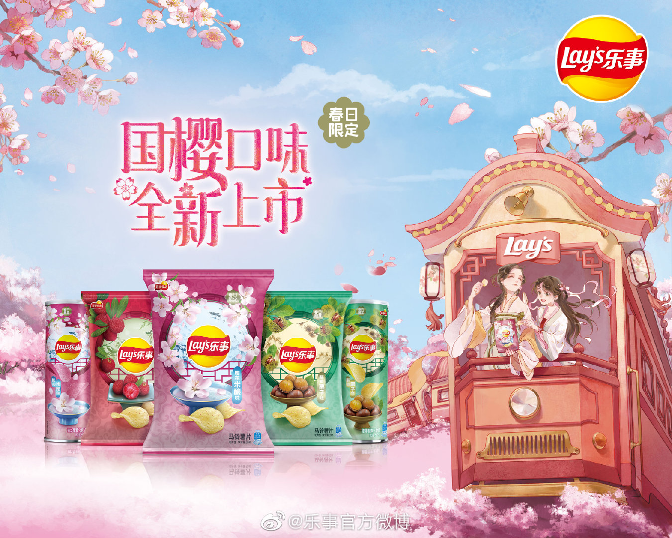 樱花配米酿是什么味道?如果你已经尝腻了常规的樱花味道,这款樱花米酿味乐事薯片或许可以满足你猎奇刁钻的味觉。此外,和乐事樱花限定口味一同推出的,还有生津杨梅味以及醇香栗子味薯片。