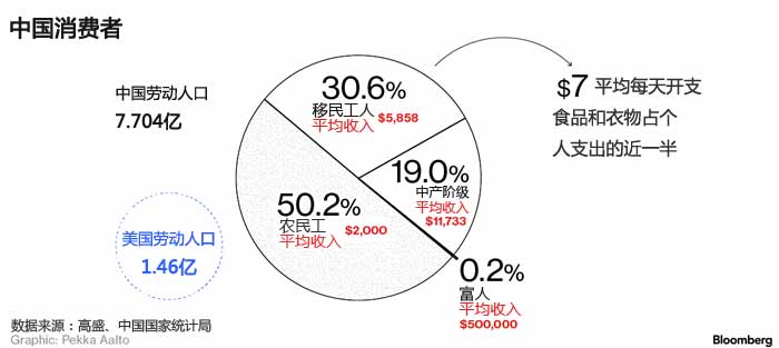 中国的就业人口总数达到7.704亿,为世界之最。但主宰中国消费市场的中产阶级依然仅占很小的一部分:据高盛集团的数据显示,只有不足2%的中国工作人口需要缴纳个人所得税。
