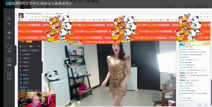 3月8日晚,一位名叫Yanghanna的韩国女主播正在熊猫TV表演跳舞,被另一位知名主播刘杀鸡看到并打赏了价值数千元的“佛跳墙”。