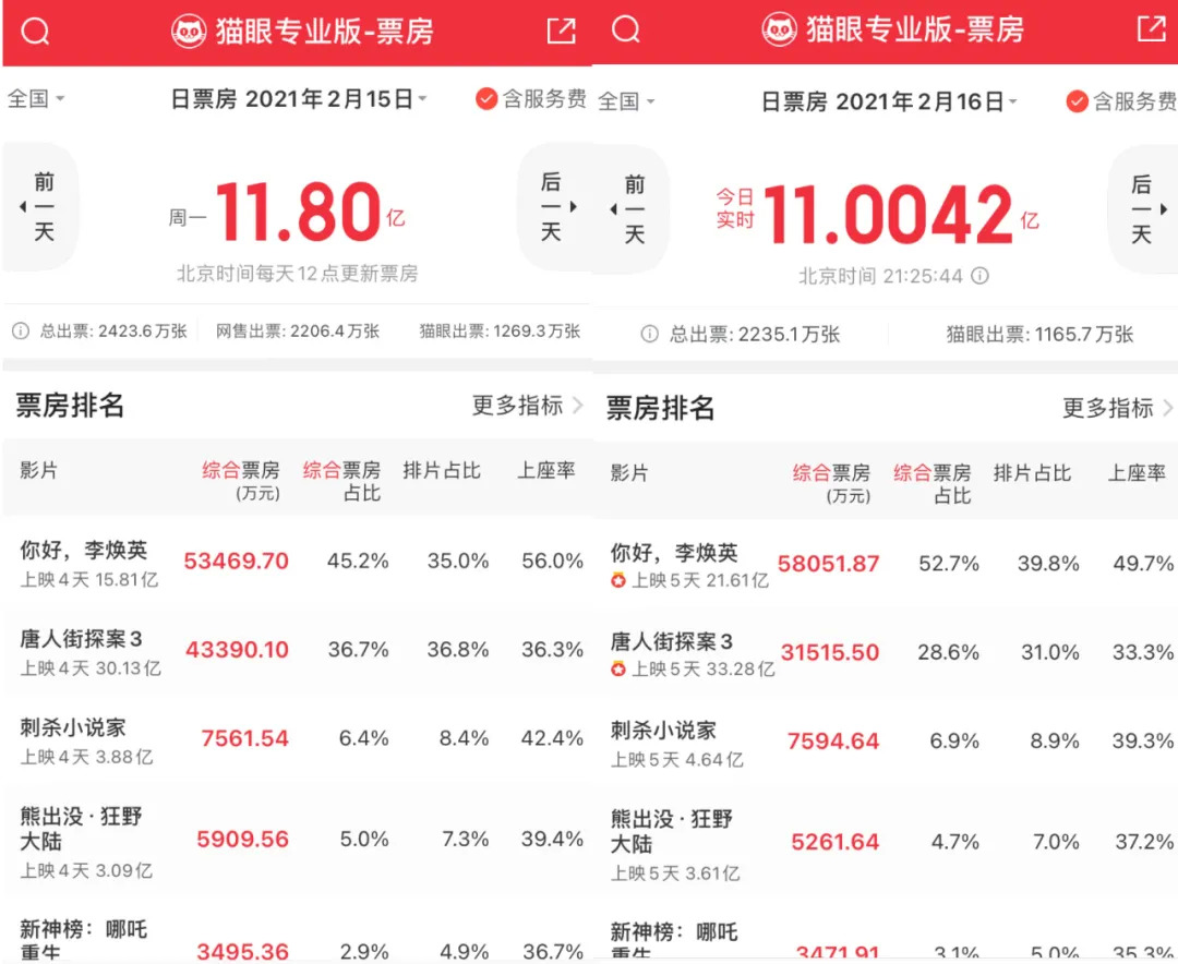 上映第四天,《你好,李焕英》单日票房超过大热的《唐人街探案3》,总票房突破17亿。