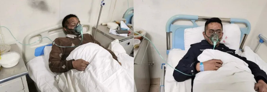 靳双溢(左)和徐荣俊(右)在医院接受治疗