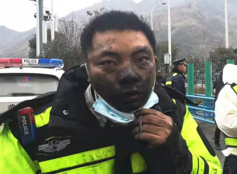 疏散结束后的这两张脸部黢黑的照片