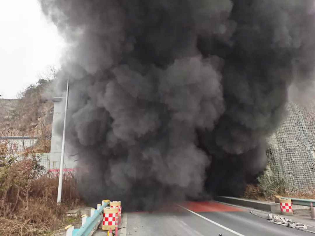 货车燃烧点距隧道口约1公里
