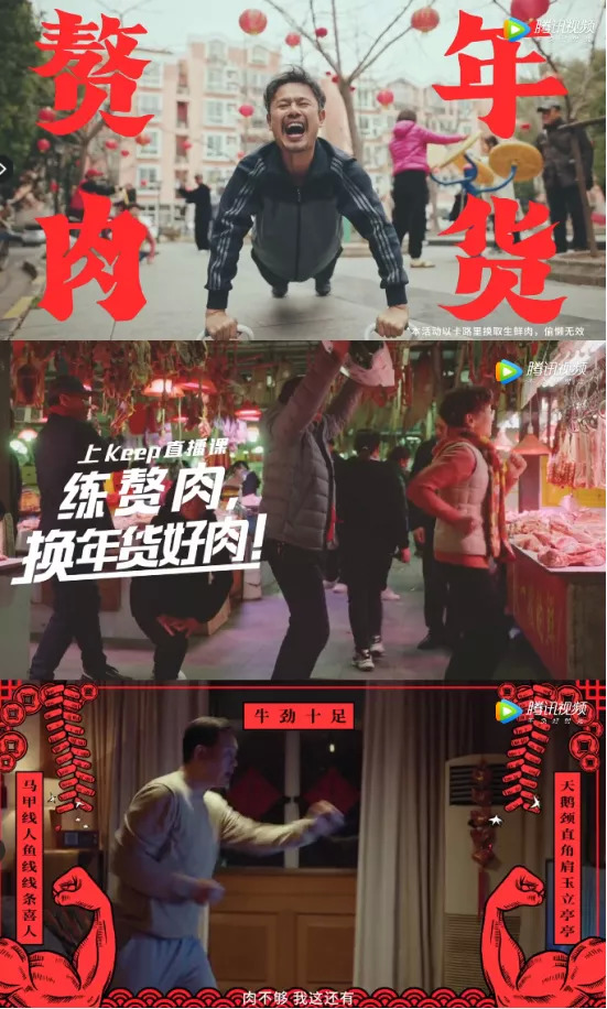 在“赘肉年货”TVC广告中,主角不再是只是年轻人,而变成了之前鲜少出现的老年人和中年人;运动场景也变得多元,除了Keep长期深耕的室内家庭健身场景,还增加了老年社区。