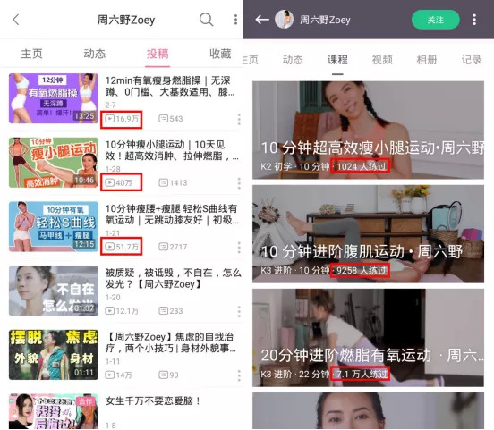尽管2020年Keep签约健身“流量明星”周六野和帕梅拉,并推出免费的系列课程,但此举对粉丝的迁移和回流没有明显作用,健身KOL的粉丝保持着原先的观看习惯,后知后觉的Keep显得十分被动。