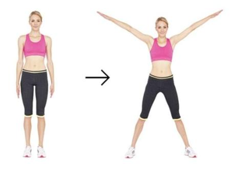 做起跳动作将手臂和腿向外侧伸直做成星星的模样。