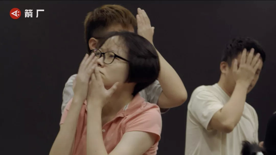 排练室内,释文双手环抱肩膀,缩起脖子,随着音乐深深地弯下腰去,久久起不来。