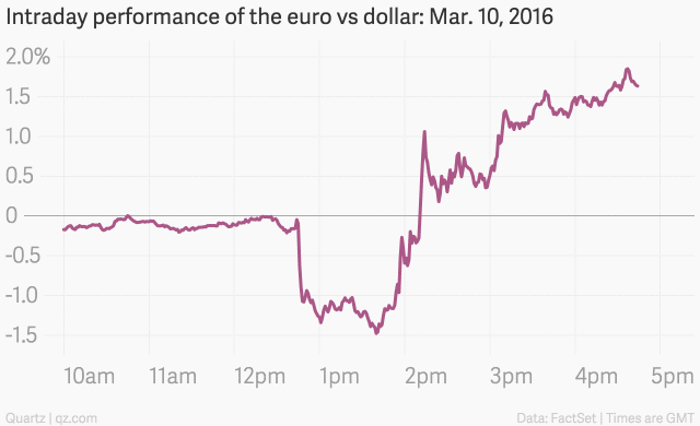 本周四宣布新一轮货币政策时,欧洲央行行长马里奥·德拉吉(Mario Draghi)似乎又说错话了。就在德拉吉新闻发布会进行的同时,欧元和欧洲股市上演了实实在在的“过山车”行情。